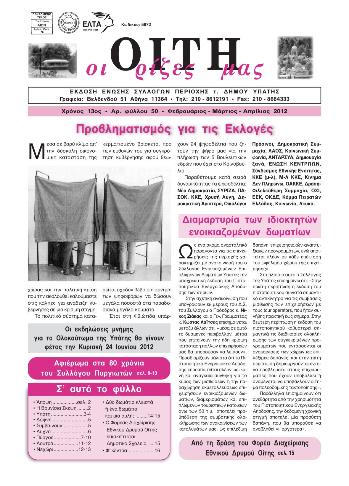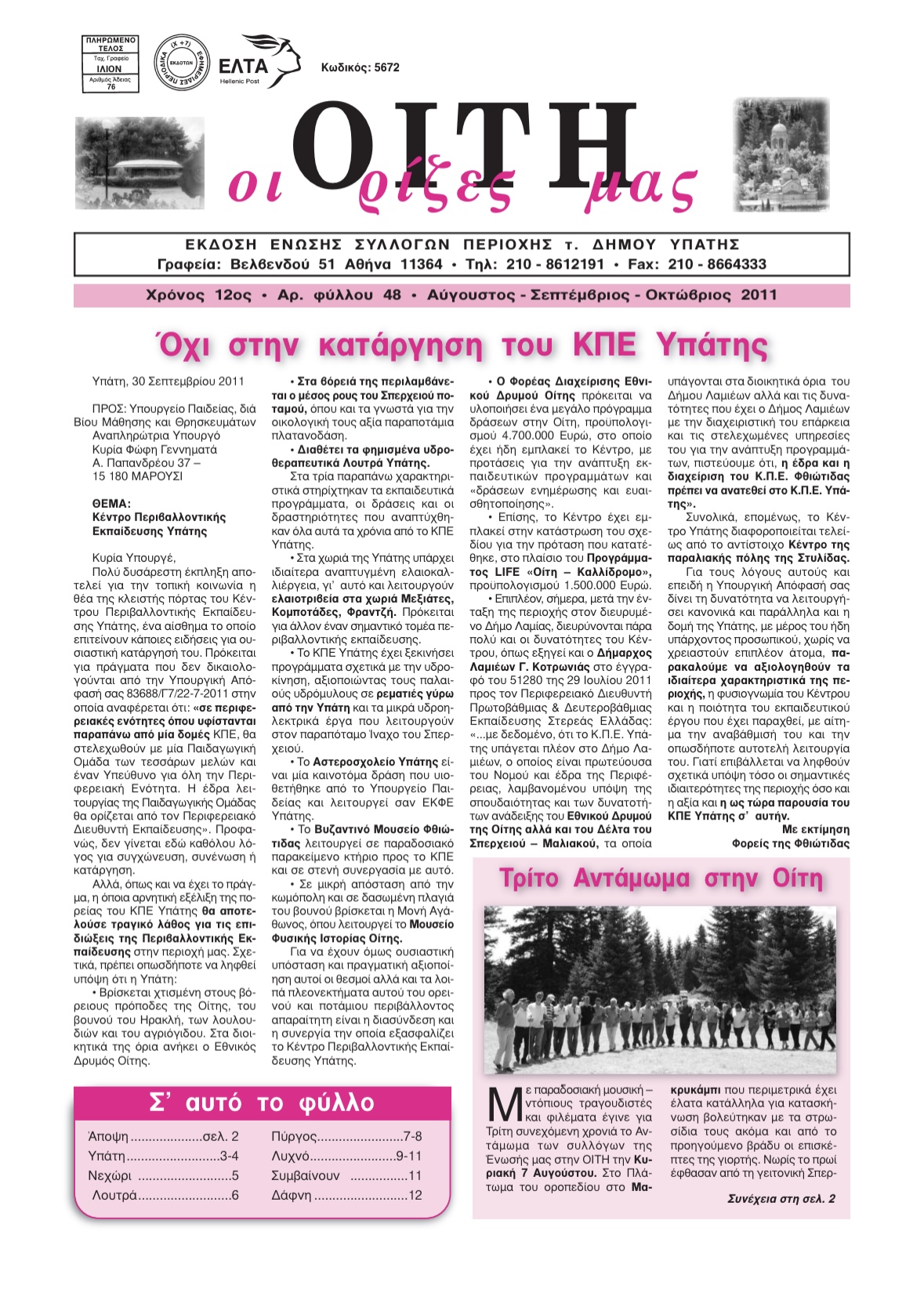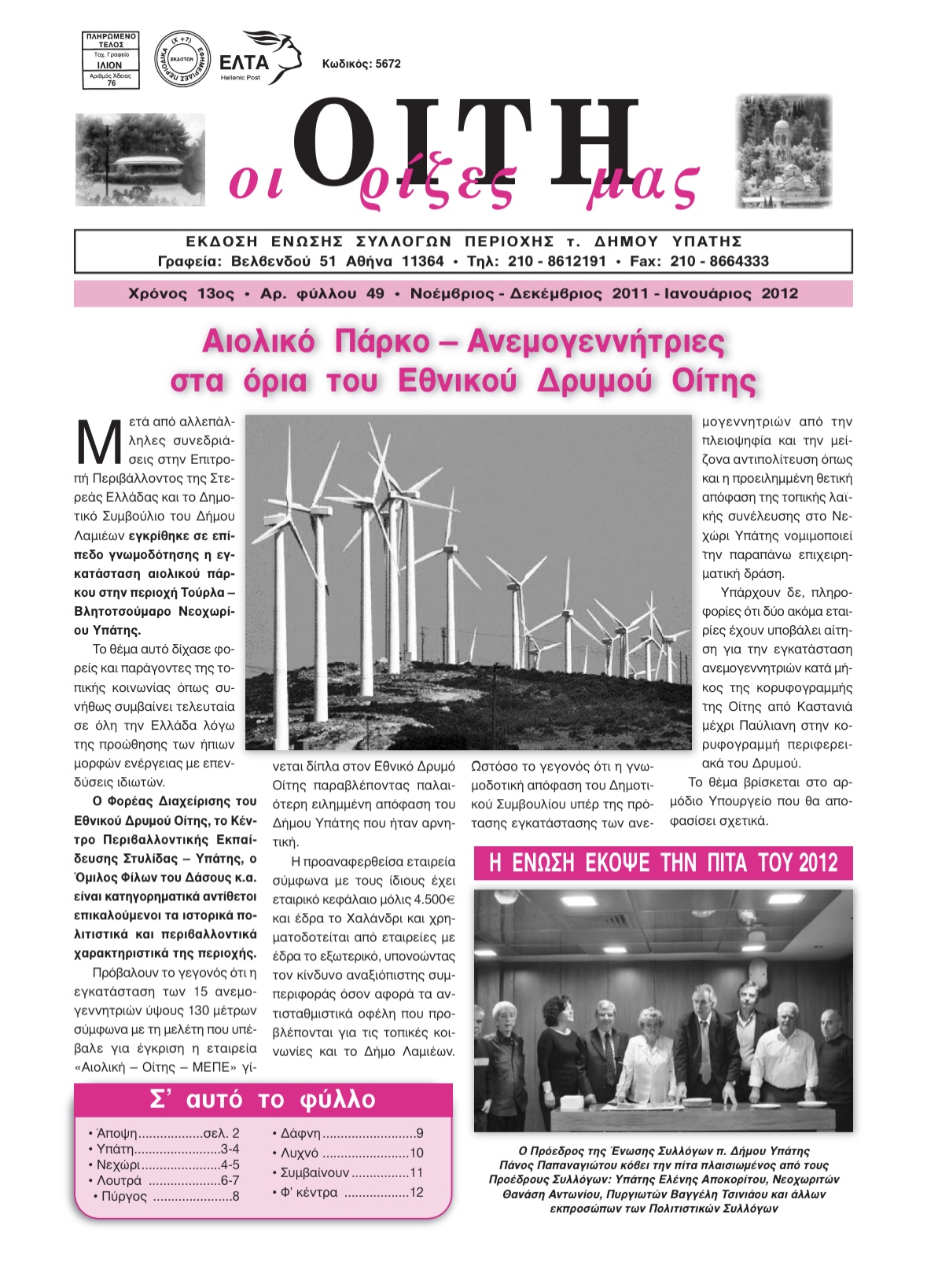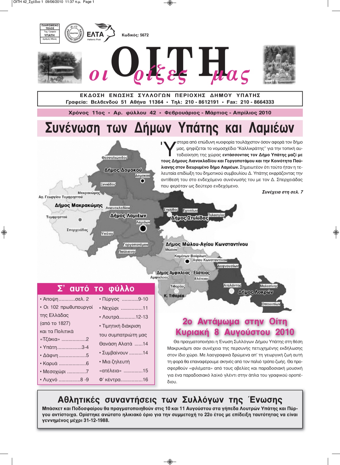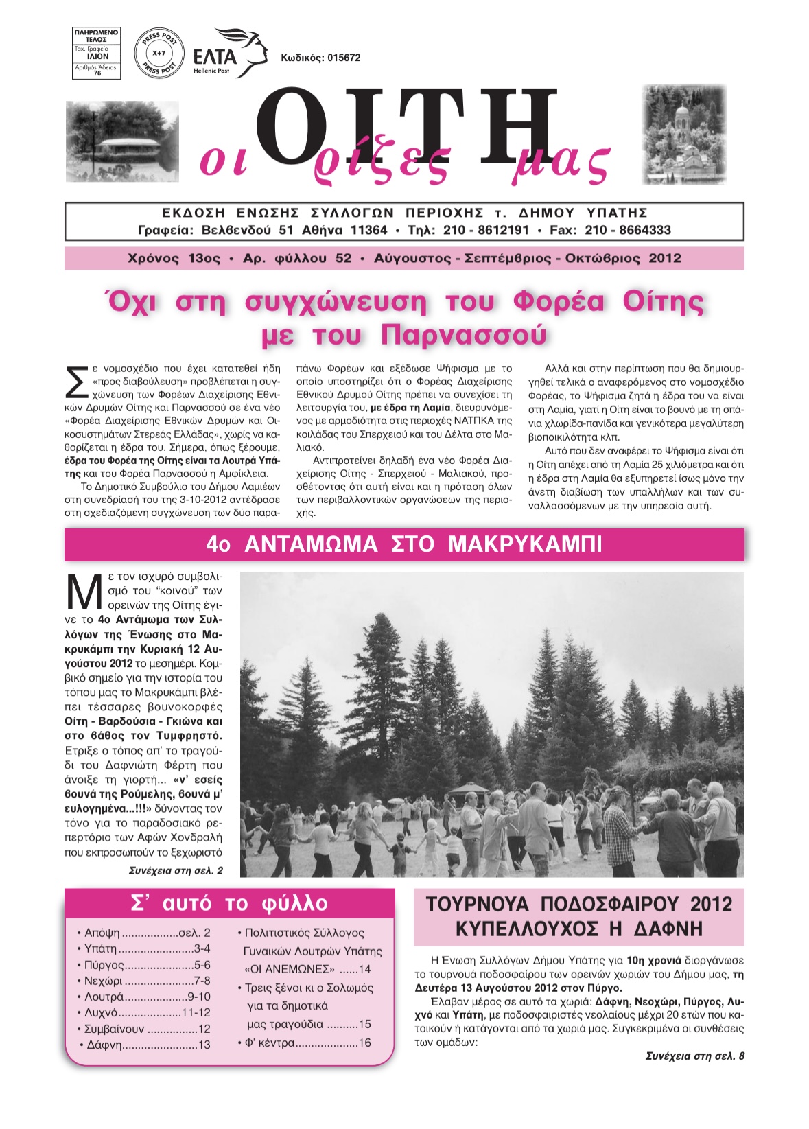 Διαβάστε ή κατεβάστε την τριμηνιαία έκδοση της ένωσης των συλλόγων της περιοχής μας, με νέα από το χωριό μας αλλά και από τα γύρω χωριά του Δήμου Υπάτης. Η Εφημερίδα δεν βρίσκεται σε κυκλοφορία πια.